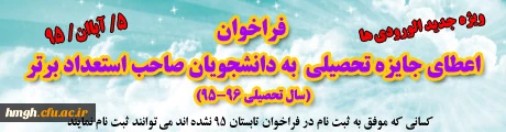 امتیاز دهید : اطلاعیه جدید- اعطای جایزه های تحصیلی به دانشجویان برتر استان قم 2 چهارشنبه 5 آبان 1395 ساعت 16:04