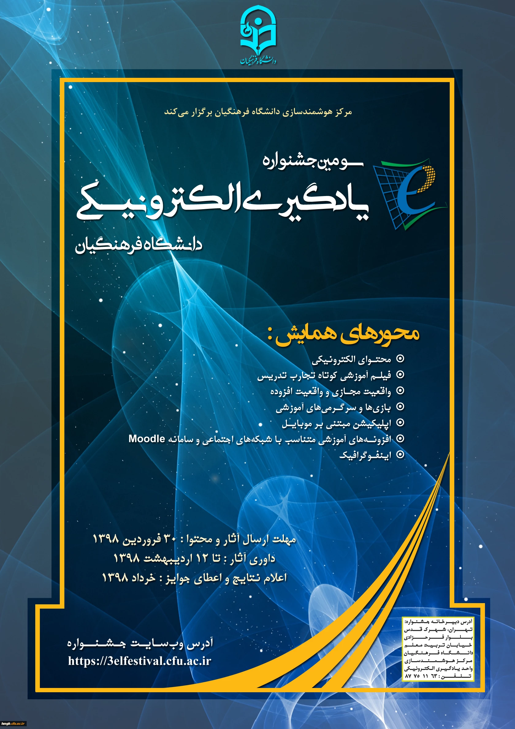 فراخوان سومین جشنواره یادگیری الکترونیکی (ویژه اساتید، دانشجومعلمان و کارکنان دانشگاه فرهنگیان) 2