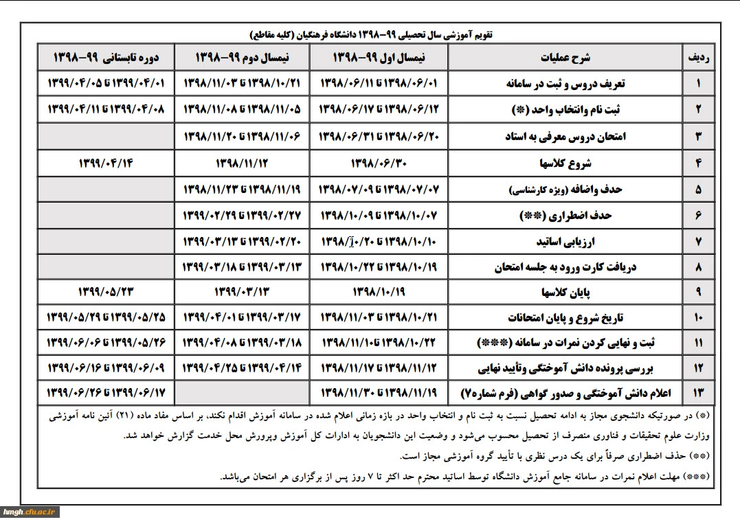 شروع کلاس های درسی طبق تقویم آموزشی نیمسال اول 99-98 2