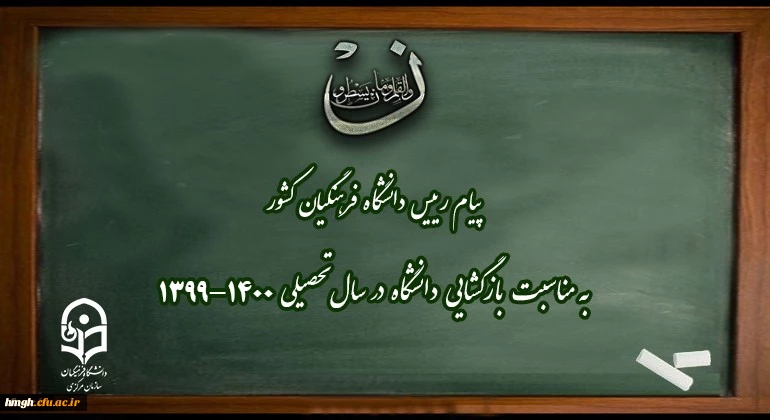 امتیاز دهید : پیام رییس دانشگاه فرهنگیان کشور به مناسبت بازگشایی دانشگاه در سال تحصیلی 1400-1399 2 شنبه 29 شهریور 1399 ساعت 8:31