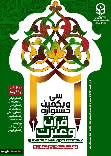 امتیاز دهید : فراخوان سی ویکمین جشنواره قرآن و عترت دانشجومعلمان دانشگاه فرهنگیان 2 دوشنبه 21 تیر 1400 ساعت 7:50