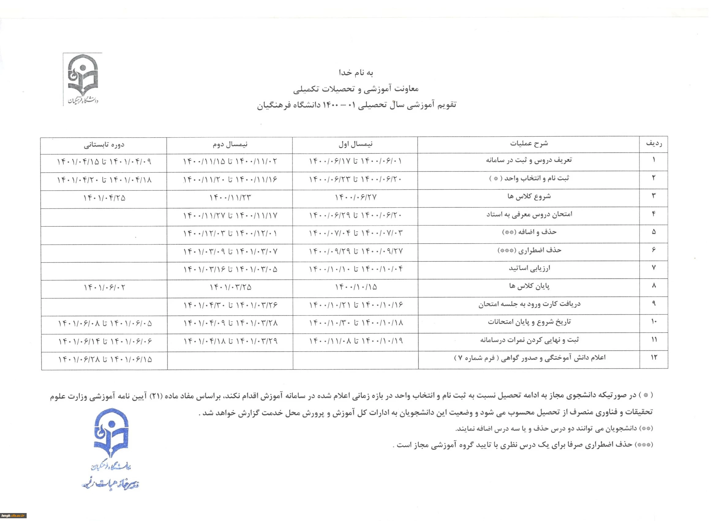 تقویم آموزشی سال تحصیلی 1401-1400 2