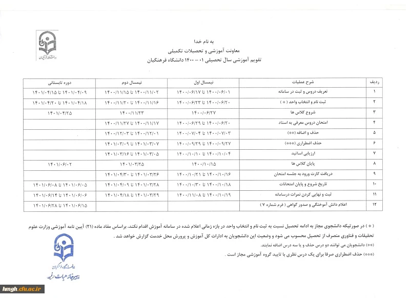 تقویم آموزشی سال تحصیلی 1401-1400 2
