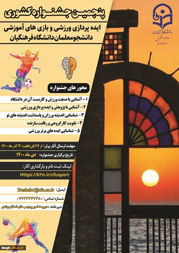 تمدید زمان ارسال آثار پنجمین جشنواره ایده پردازی ورزشی و بازی های آموزشی دانشجو معلمان دانشگاه فرهنگیان 3