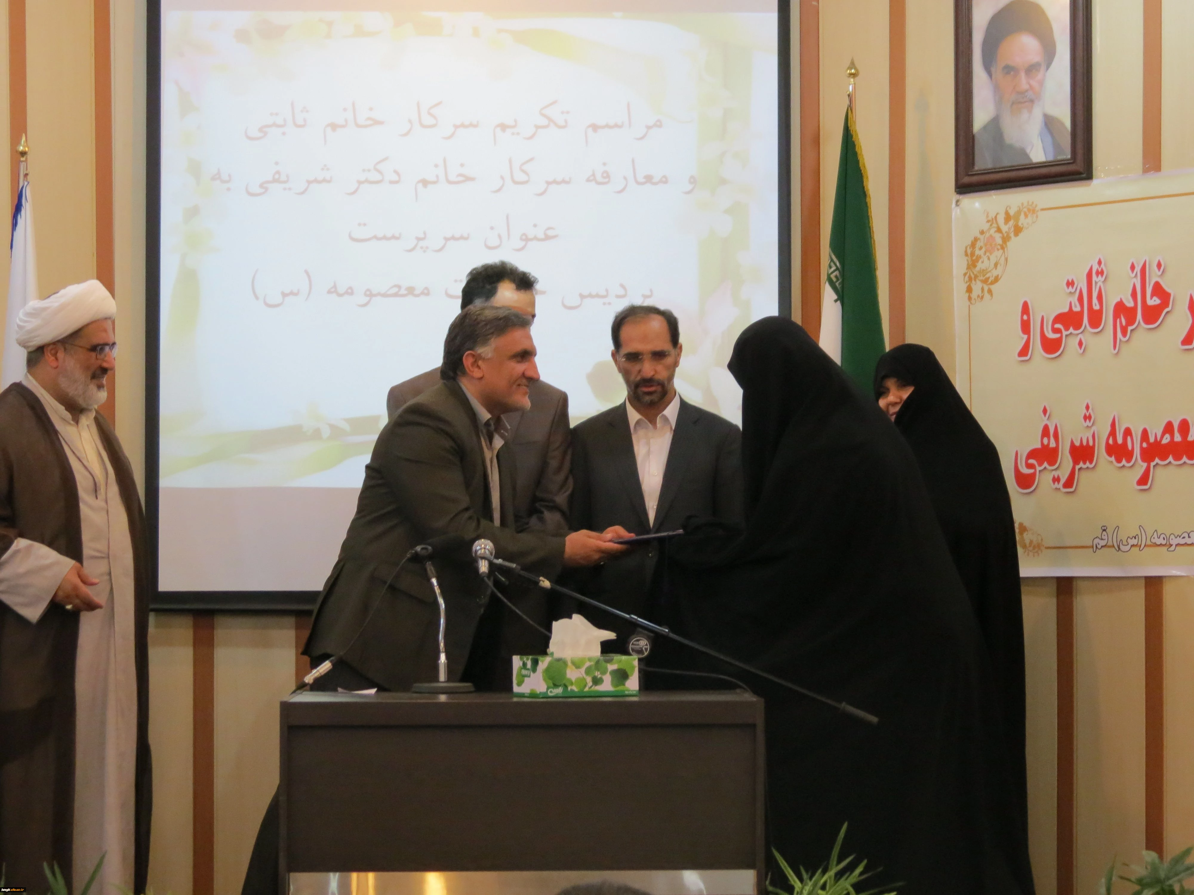 عصر روز شنبه مورخ1394/4/13 مراسم معارفه سرپرست جدید پردیس حضرت معصومه (س) در سالن اجتماعات این پردیس برگزار شد. برگزاری مراسم تکریم سرکارخانم ثابتی ومعارفه سرکار خانم دکتر شریفی به عنوان سرپرست پردیس حضرت معصومه(س) 4