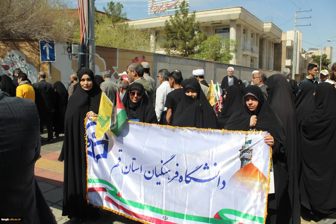 حضور اساتید، کارکنان و دانشجومعلمان پردیس حضرت معصومه(س) در راهپیمایی روز جهانی قدس 2