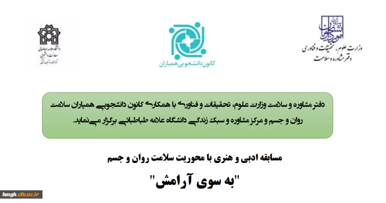 امتیاز دهید : مسابقه بزرگ ادبی و هنری با محوریت سلامت روان و جسم با عنوان «به سوی آرامش» 2 شنبه 11 مرداد 1404 ساعت 7:00